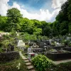 A Felsőhámori temető a lillafüredi kisvasút pályájától északra, meredek hegyoldalon található.